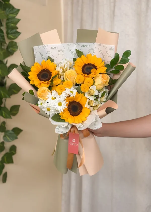 El Ramo Brisa es un campo de sol en tus manos, una celebración de la energía y el optimismo, diseñado para brillar en el día de las flores amarillas.